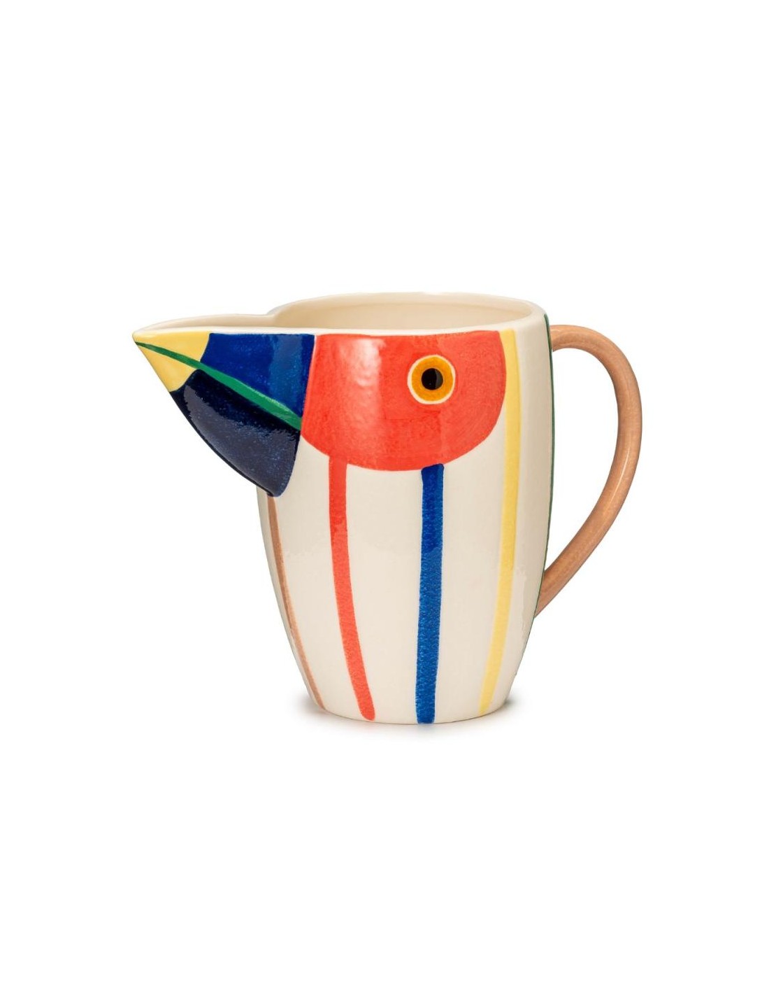 Brocca in ceramica dipinta a mano, a forma di Tucano: un simpatico accessorio per la tua tavola estiva, da coordinare ad altri accessori dello stesso stile presenti nel nostro sito.