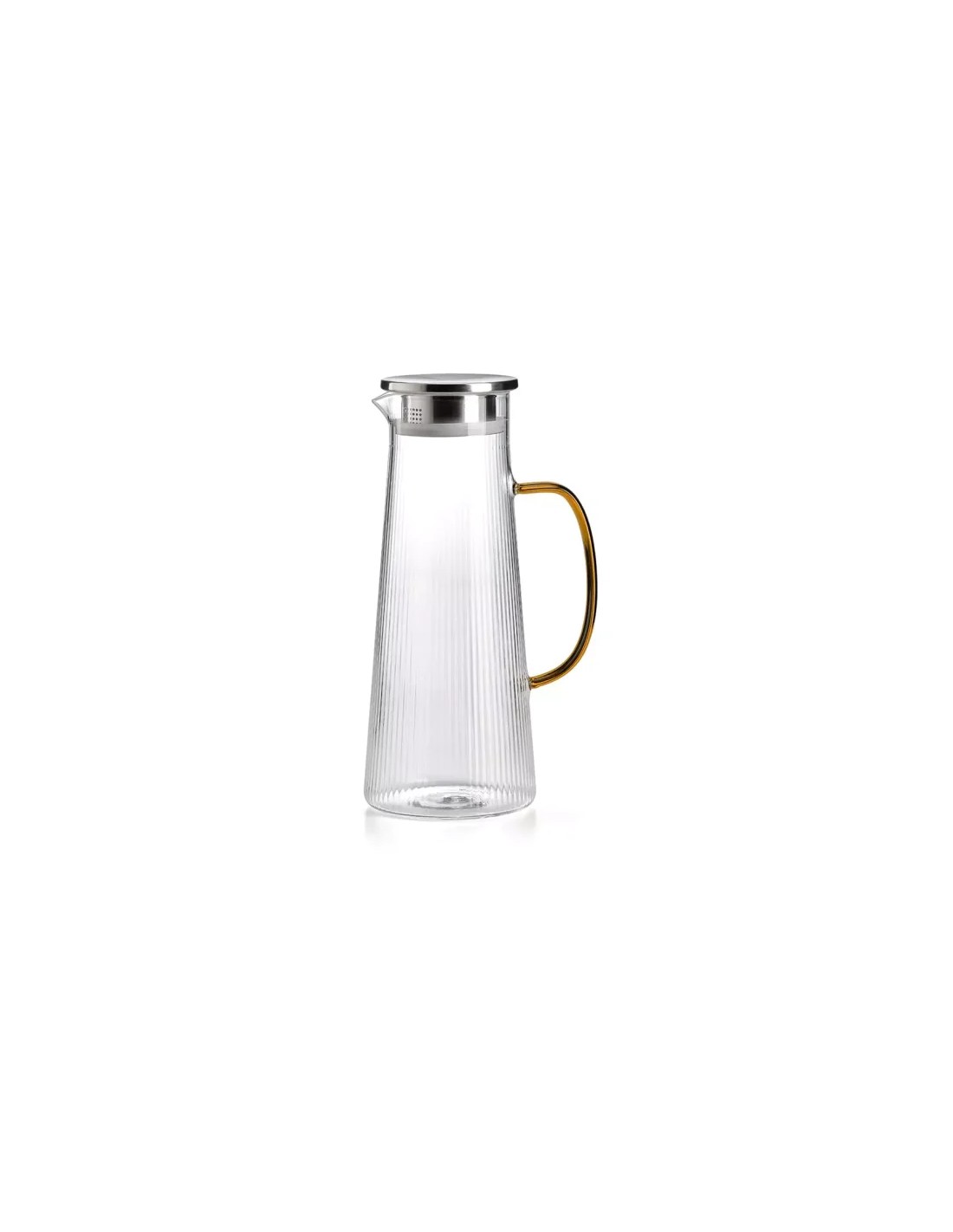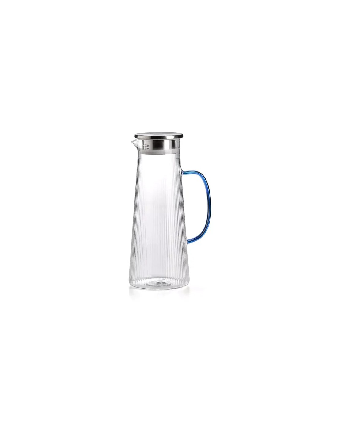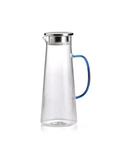Caraffa Narciso Plissè in vetro borosilicato, nei colori rosa, blu e ambra , con coperchio in acciaio. Si tratta di un accessorio funzionale ma elegante ,di grande qualità: adatto ad una tavola giornaliera quanto ad una elegante.