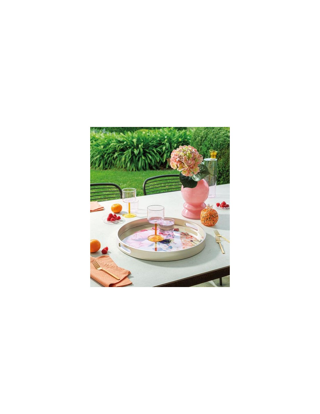Vassoio in vetro decorato della collezione Dune di seta, quadrato o tondo. Un bellissimo decoro floreale si estende su tutta la superficie, ma le sfumature di colori rendono ancora più particolare e raffinato il vassoio.