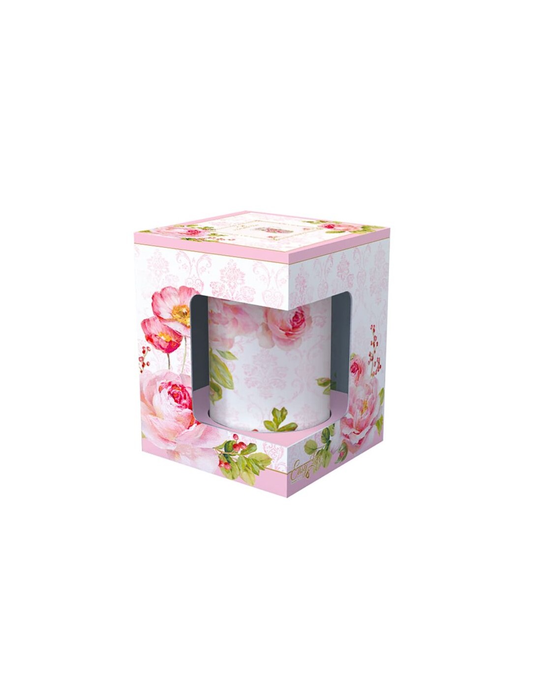 Mug Floral Damask in fine porcellana e in box colorata,250 ml. La mug è decorata con fiori dalle sfumature di rosa e da fiori primaverili: una collezione per chi ama lo stile classico