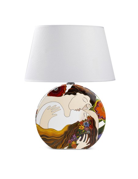 Lampada con la base in porcellana e paralume in tessuto , della collezione "Il primo bacio "di L.Burch, firmato Egan. Si tratta di una versione nuova del bacio di Klimt.