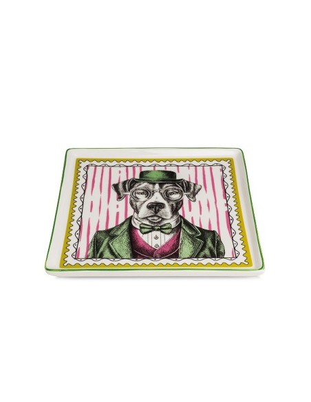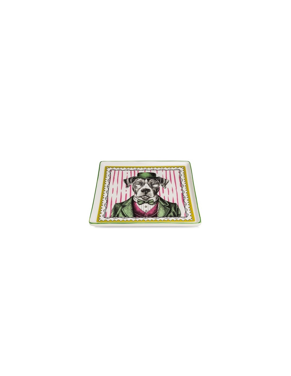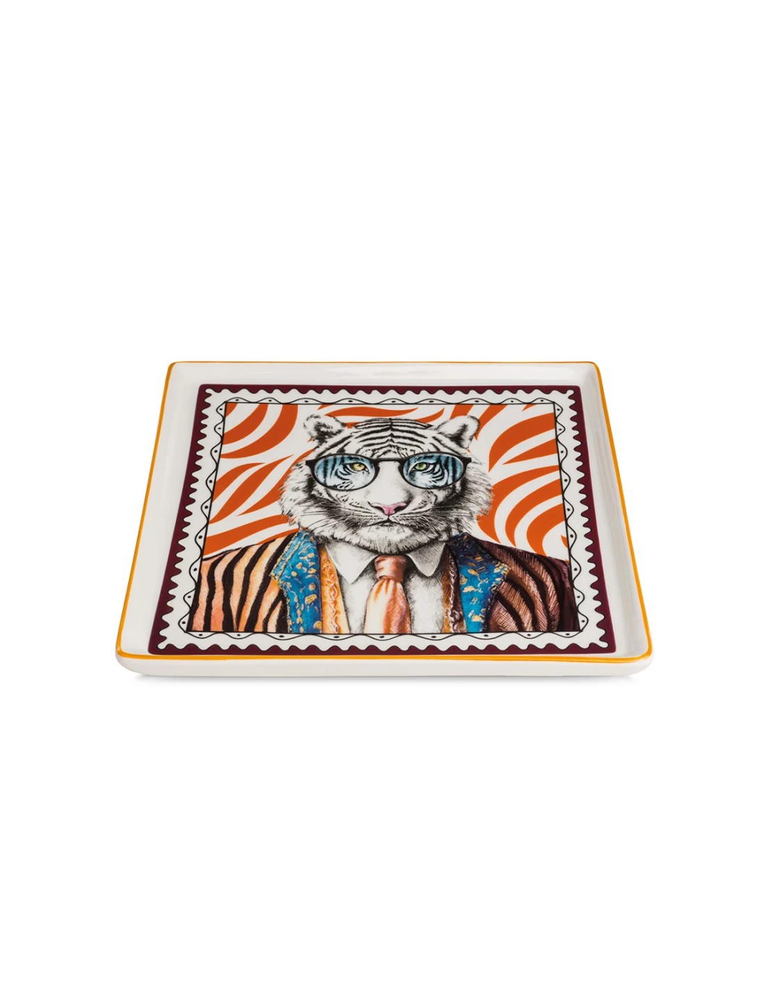 Vassoio quadrato in porcellana della collezione Human Essence, misura 19x19 cm. Il vassoio, che può essere utilizzato anche come svuotatasche , è decorato in maniera originale , ogni animale rappresenta una qualità.