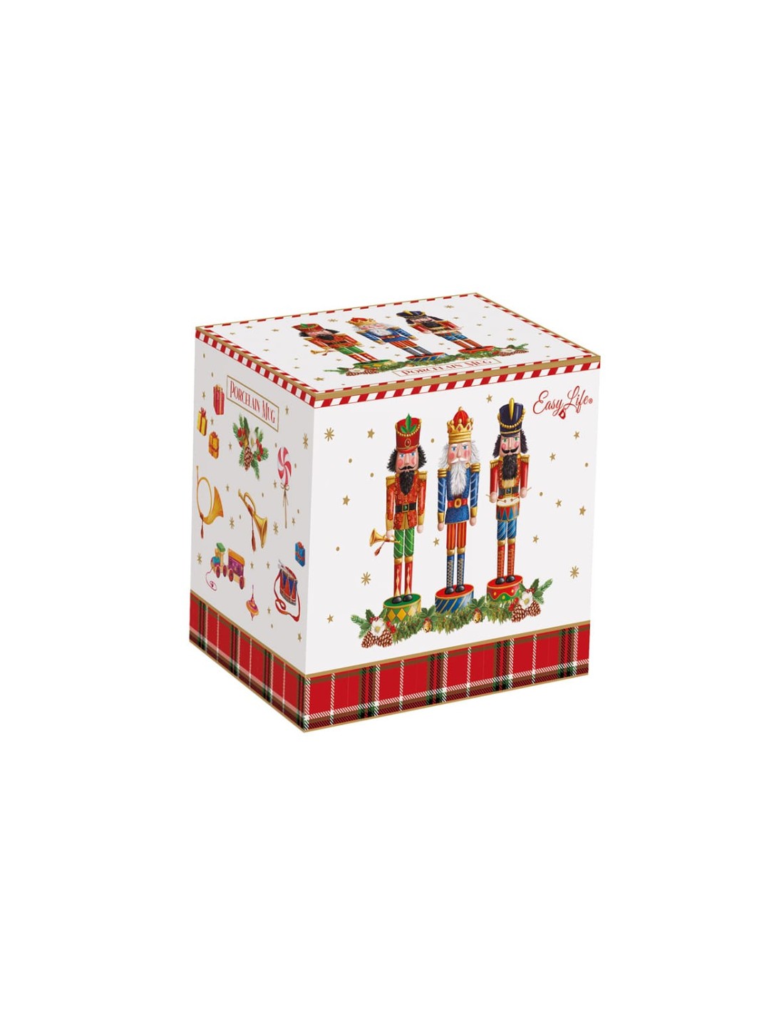 Tazza in fine porcellana della collezione Vintage Nutcracker, in scatola colorata da 350 ml. La tazza presenta alla base una fascia in tartan e tre simpatici schiaccianoci ,protagonisti del Natale.