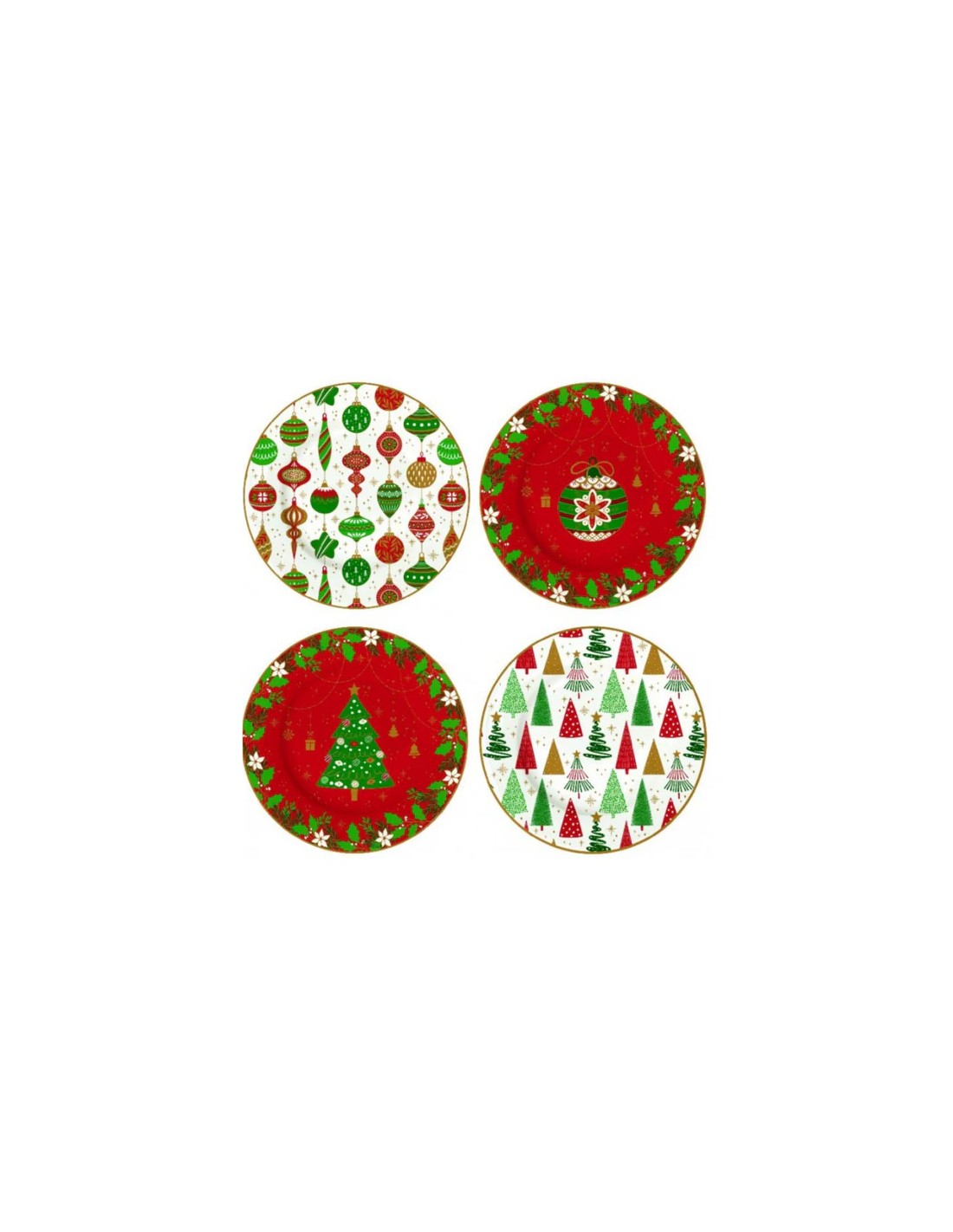 Set di 4 piattini dolce della collezione Jingle Bells, in finissima porcellana e in scatola regalo. Un decoro tradizionale e di effetto, da abbinare anche al set caffè.