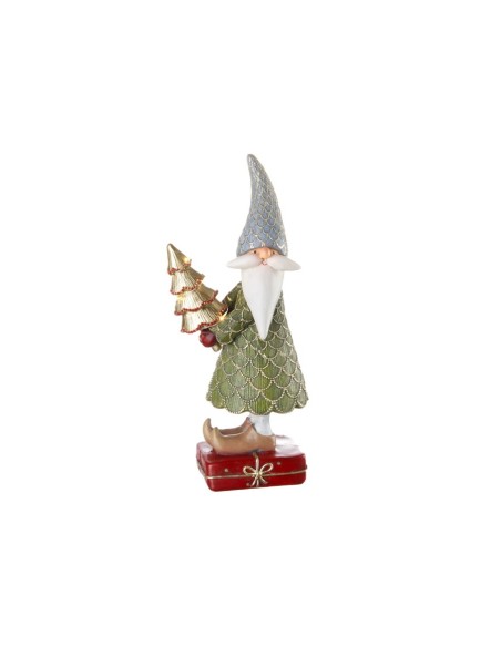 Babbo Natale piccolo, della collezione Allegro girotondo : simpatico e rifinito nei particolari, il Babbo Natale che porta in dono un albero dorato con led.