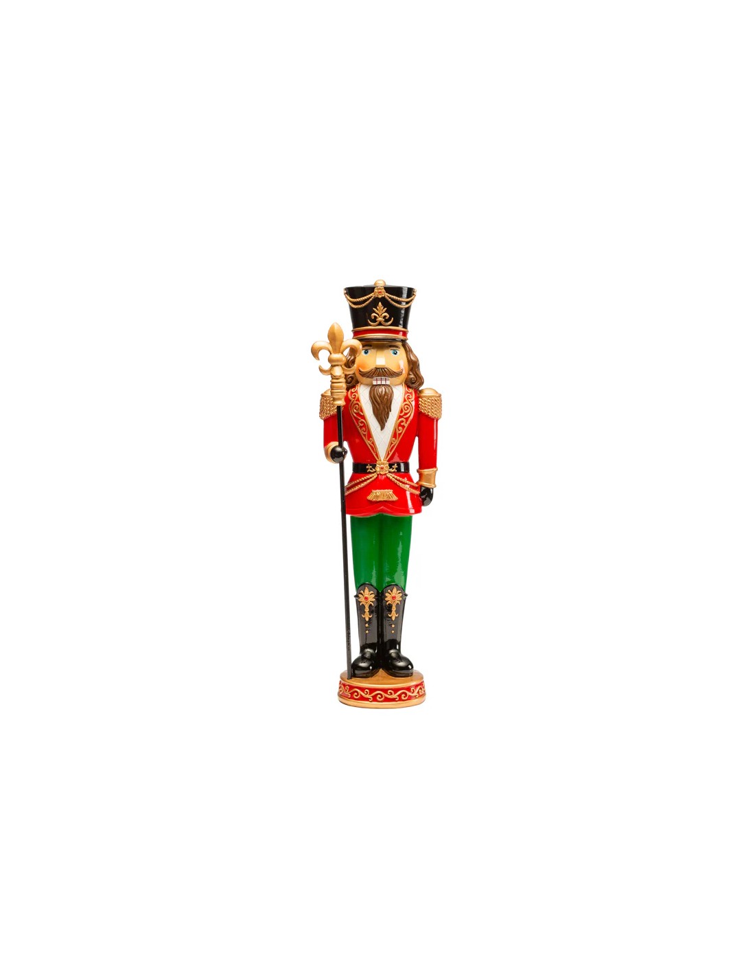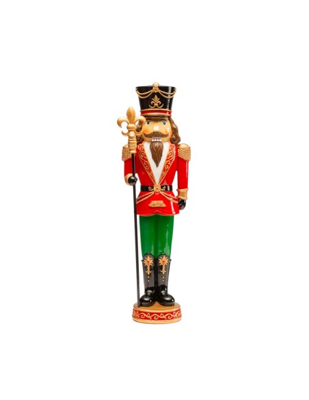 Schiaccianoci gigante con ghirlanda ,alto 45,5 cm , in resina: colori vivaci, rifinito nei particolari e con dettagli in oro. Lo schiaccianoci è entrato a far parte della nostra tradizione natalizia, diventando un oggetto decorativo elegante e raffinato, da collocare in un ingresso o in qualsiasi angolo della tua casa .
