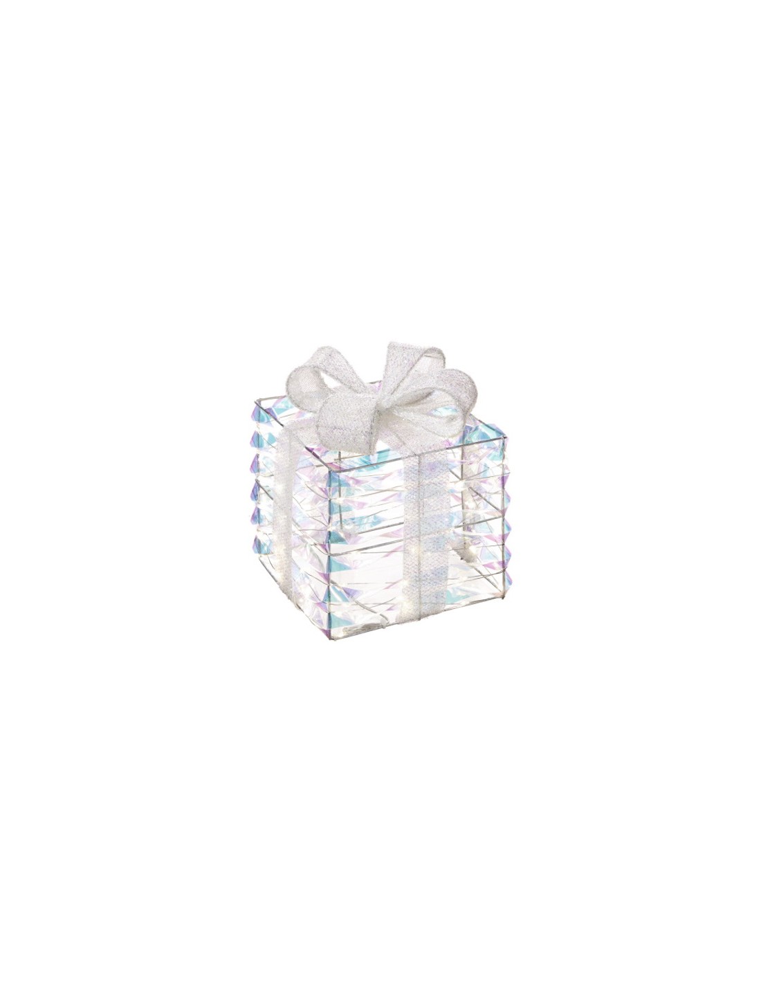 Pacco luminoso medio della collezione Brillano i sogni, in metallo/politilene , colore ghiaccio, dotato di 200 luci led ed alimentazione 220 V. Si tratta di un oggetto decorativo di grande effetto scenografico: diffonde una luce soffusa che rende ogni ambiente particolarmente luminoso e caldo. Disponibile in 3 dimensioni .