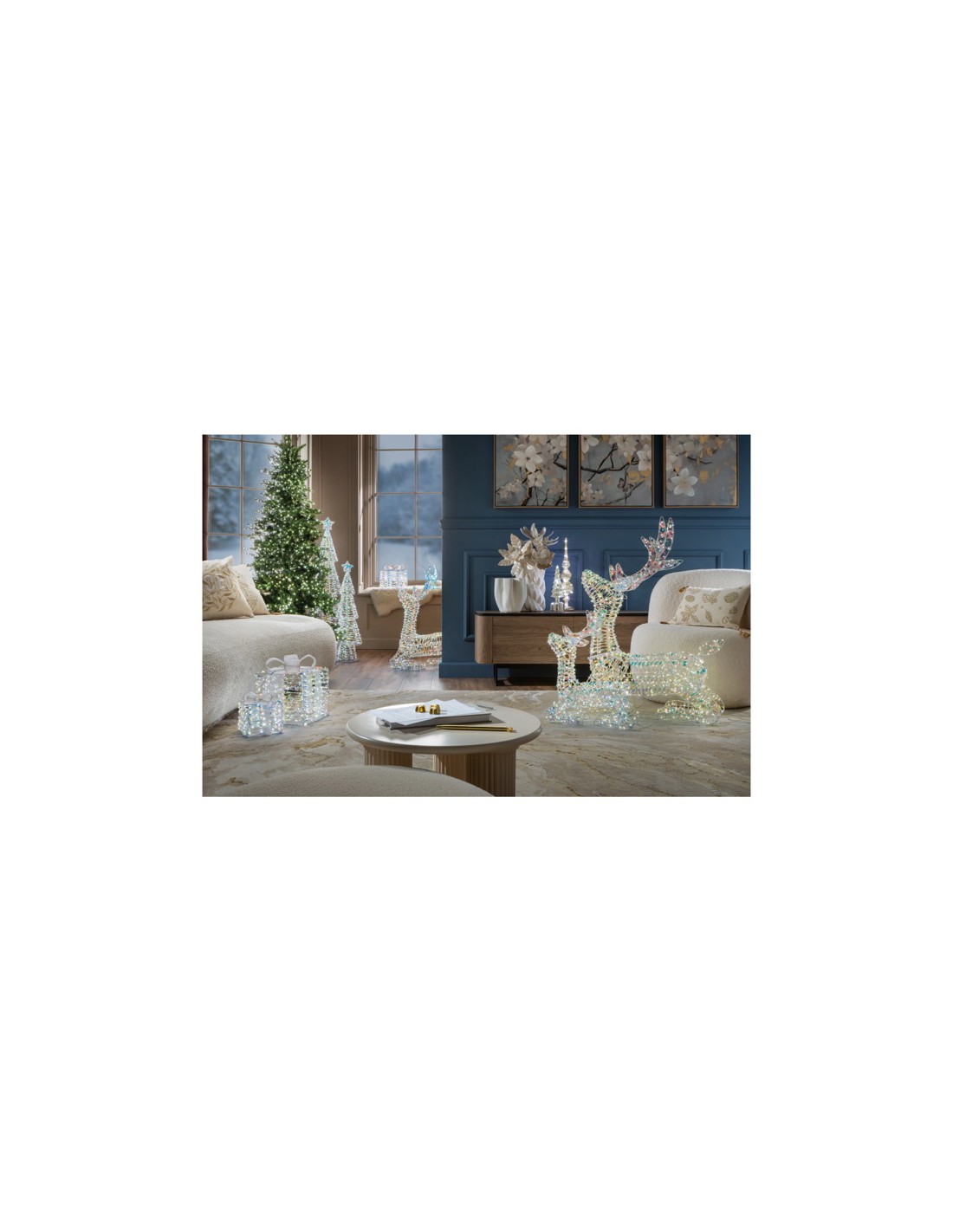 Renna piccola della collezione Foresta di ghiaccio, illuminata con 300 luci led ed alimentazione 220V, in metallo e politilene. Si tratta di un elemento decorativo originale per le sue caratteristiche, ma sicuramente un simbolo della tradizione natalizia, con la luce che diffonde , rende la tua casa luminosa e calda.