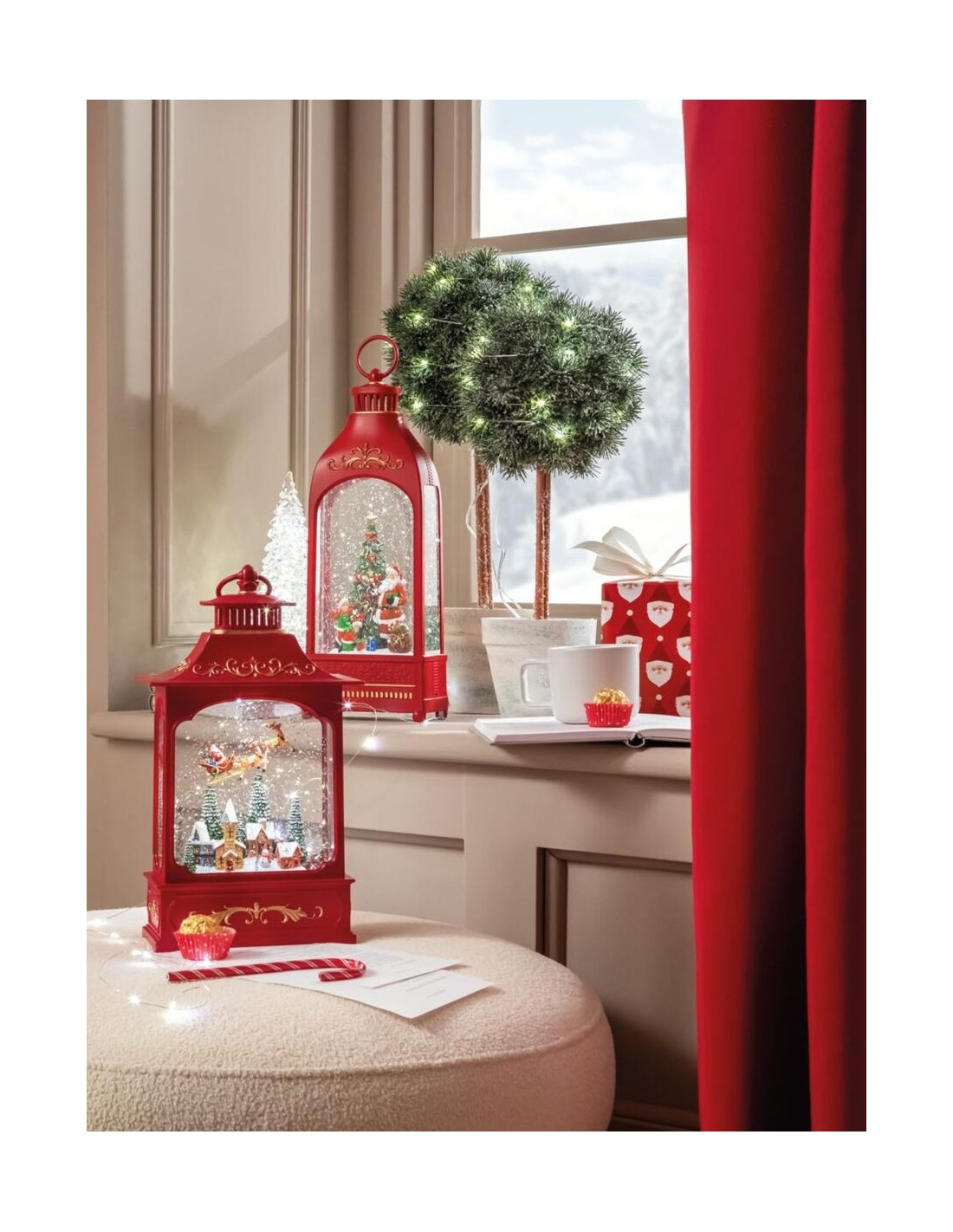 Lanterna bassa della collezione Christmas Lights, una Boule de neige in resina, con luce led, musica, movimento continuo e timer, batterie AA: si tratta di un oggetto che con il suo stile ci porta in mondo incantato, rendendo la tua casa luminosa e gioiosa.