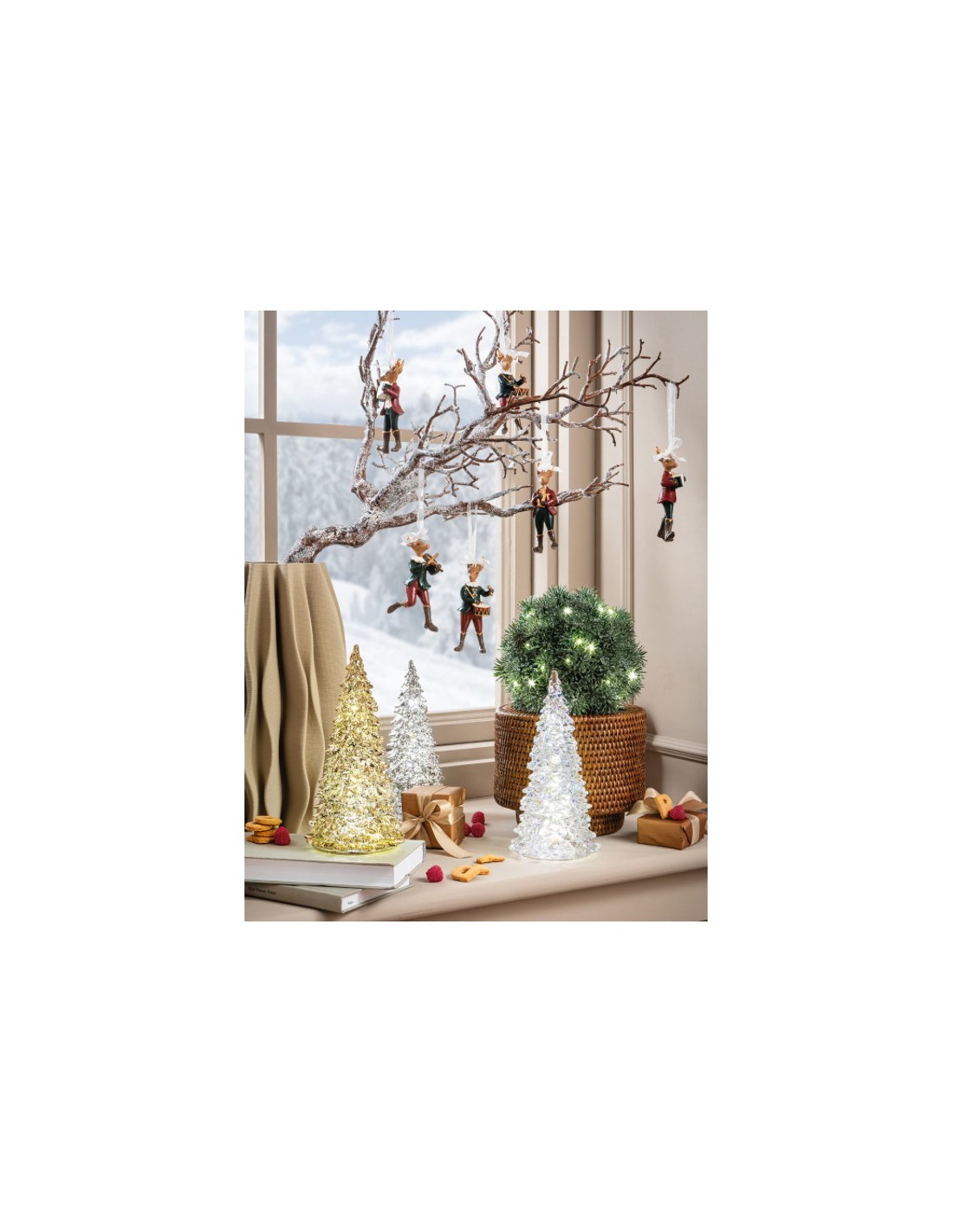 Albero argento della collezione Sentiero di cristallo in vetro e con luce led (AAA): una decorazione da appoggio per addobbare qualsiasi angolo della tua casa e renderlo accogliente e luminoso.