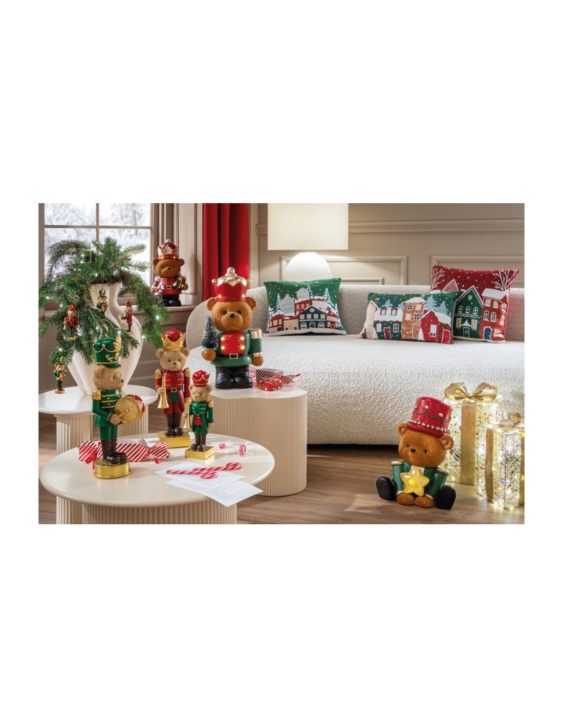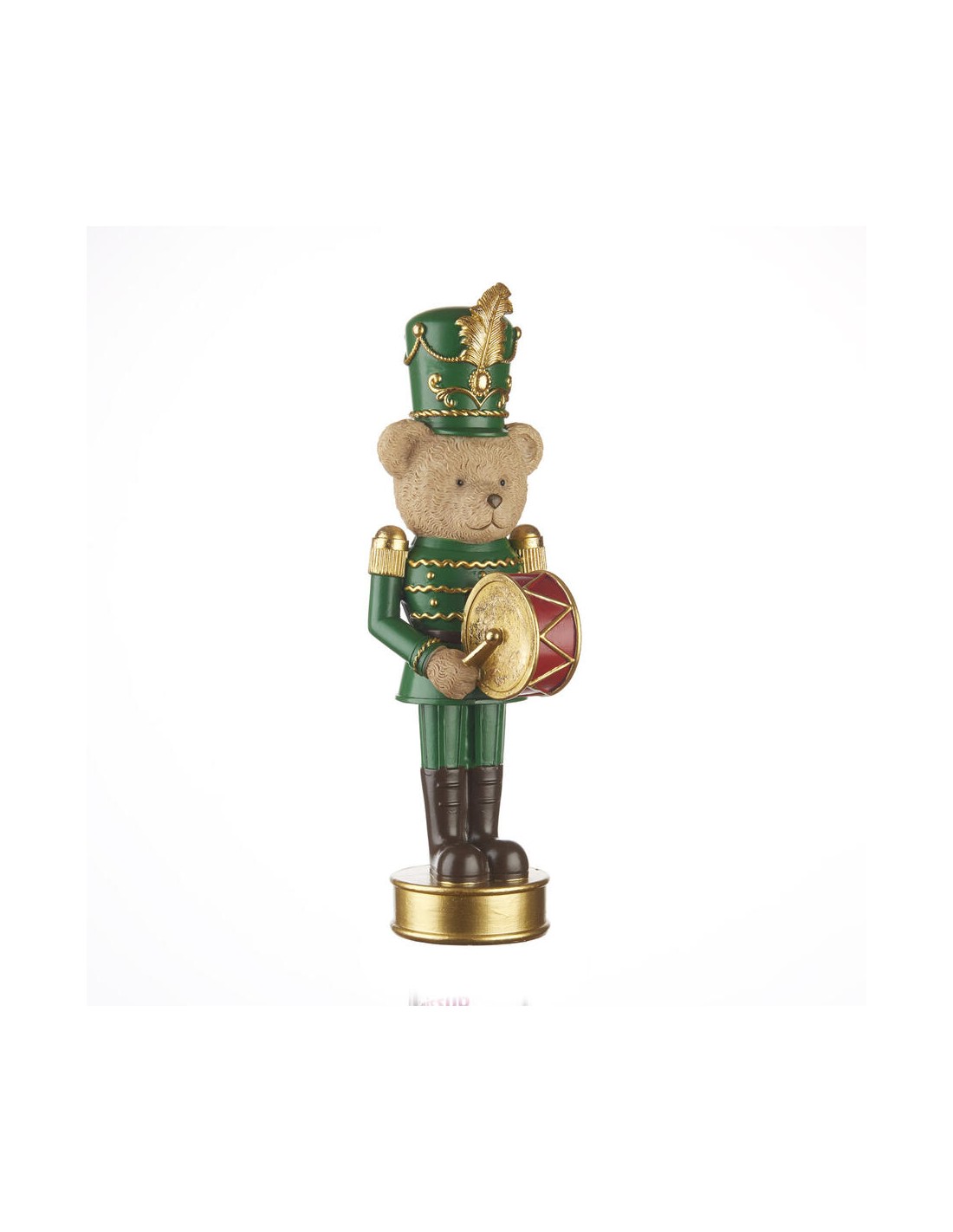 Orso della collezione "Teddy Bear Orchestra" con tamburo è una decorazione d'appoggio in resina, rifinita nei dettagli. che evoca un senso di nostalgia e calore familiare, un tocco gioioso e affettuoso all'atmosfera natalizia, che ci porta in una fiaba invernale.
