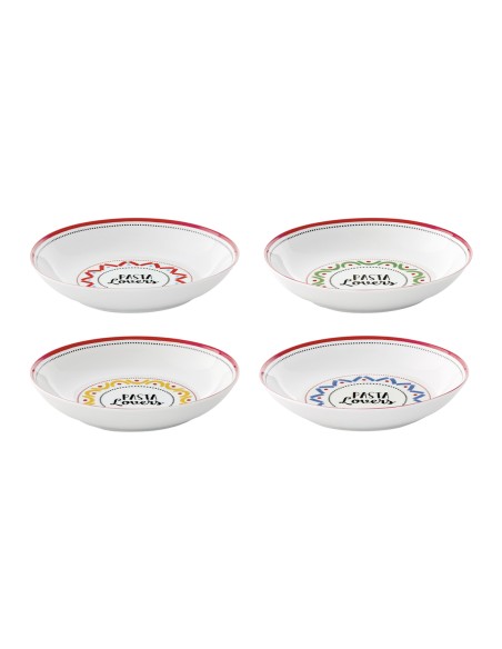 Set di 4 piatti della collezione Pizza & Pasta Lovers, in porcellana e colour box. Design moderno, per una tavola comoda e pratica: la collezione si ispira ai grandi classici della tradizione italiana, la pasta e la pizza.
