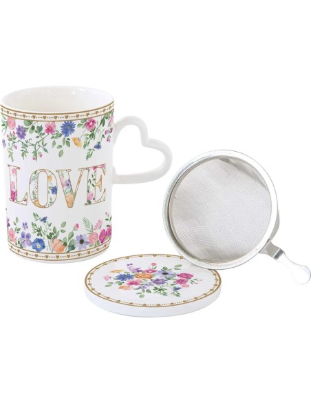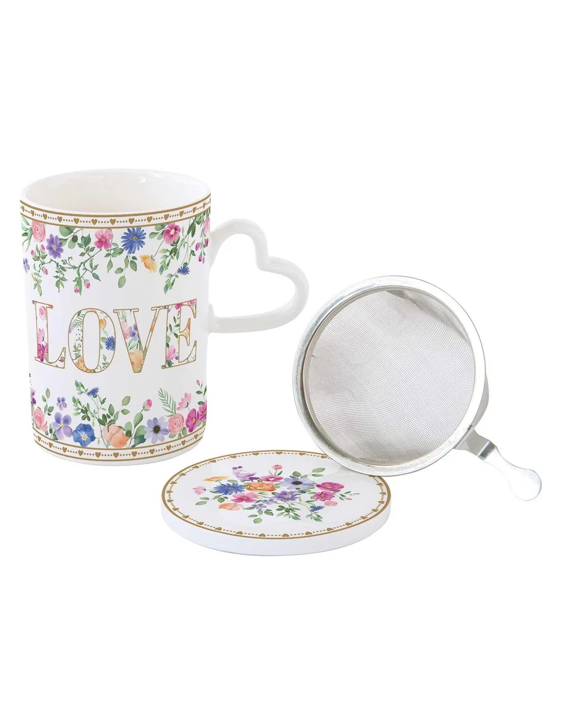 Infusiera in finissima porcellana, con tappo e e manico a forma di cuore della collezione Mon Amour : un decoro raffinato di fiori dai colori pastello con dettagli in oro.